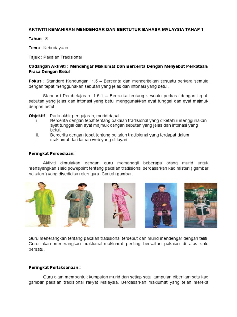 Aktiviti Kemahiran Mendengar Dan Bertutur Bahasa Malaysia Tahap 1 Pdf