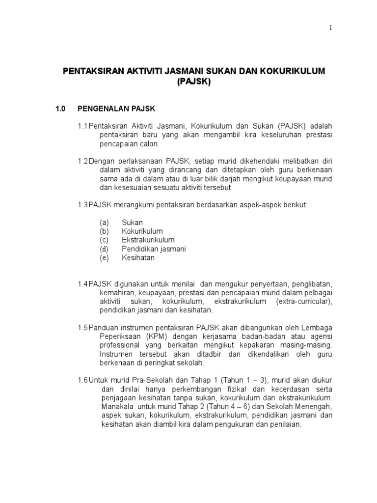Pentaksiran Aktiviti Jasmani Sukan Dan Kokurikulum Pajsk 2012setiap Aktiviti Sukan Dan Kokurikulum Diambil Kira Untuk Tujuan Pentaksiran Dan Menyediakan Laporan 6 Sokongan Membantu
