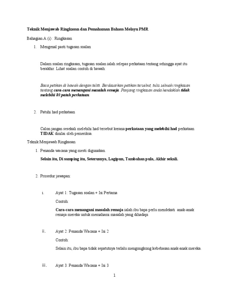 Panduan Menjawab Soalan Bahagian A Pmr Pdf