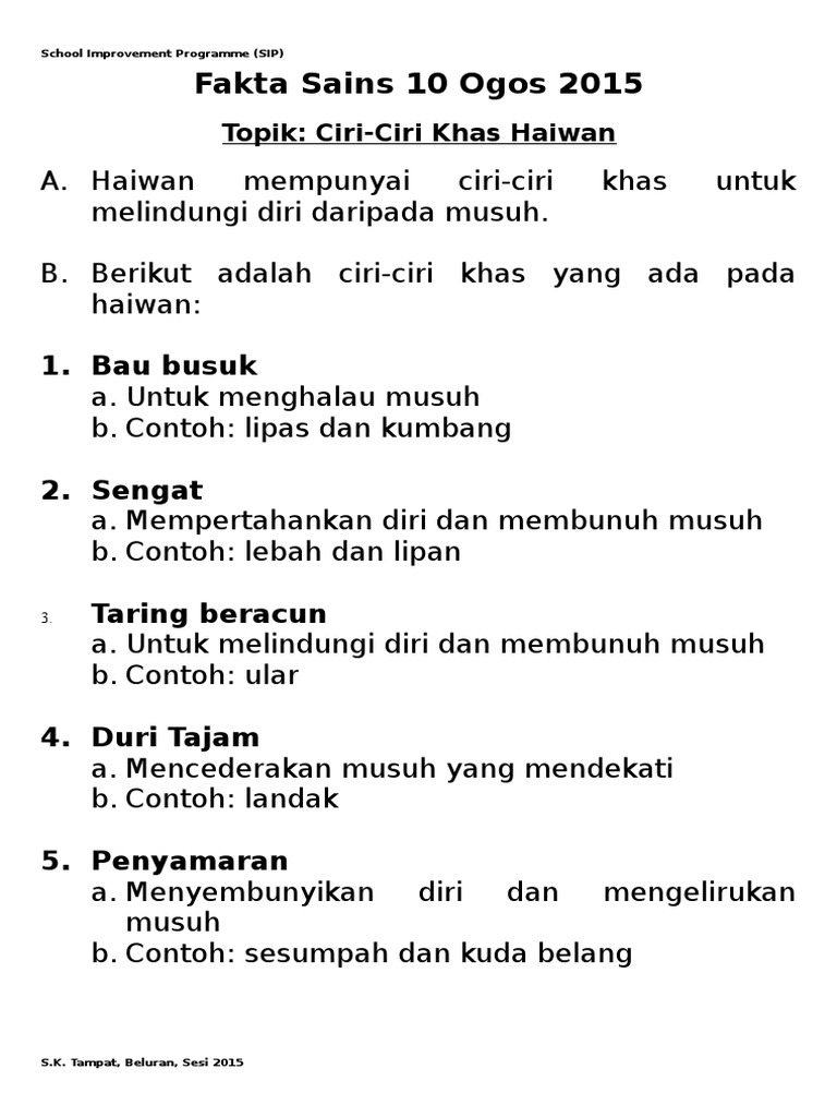 11 Ciri Ciri Khas Haiwan 1 Pdf