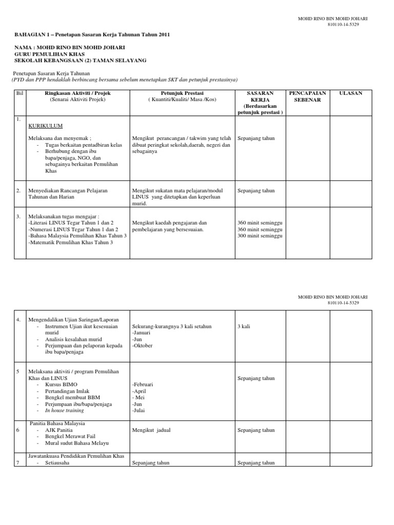 Doc Contoh Sasaran Kerja Tahunan Welly Tuah Academia Edu