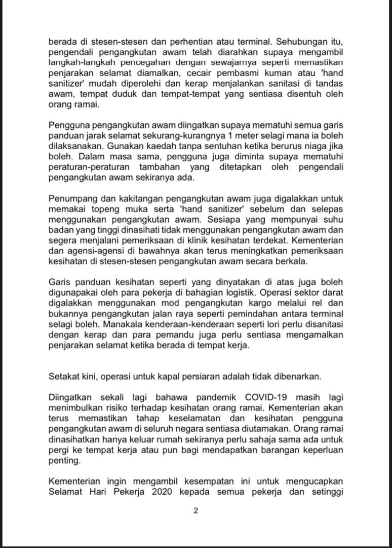 تويتر Jab Perdana Menteri على تويتر Kenyataan Media Menteri Pengangkutan Malaysia Tajuk Perubahan Garis Panduan Untuk Perkhidmatan Pengangkutan Awam Bagi Tempoh Semasa Perintah Kawalan Pergerakan Sumber Kementerian Pengangkutan Malaysia
