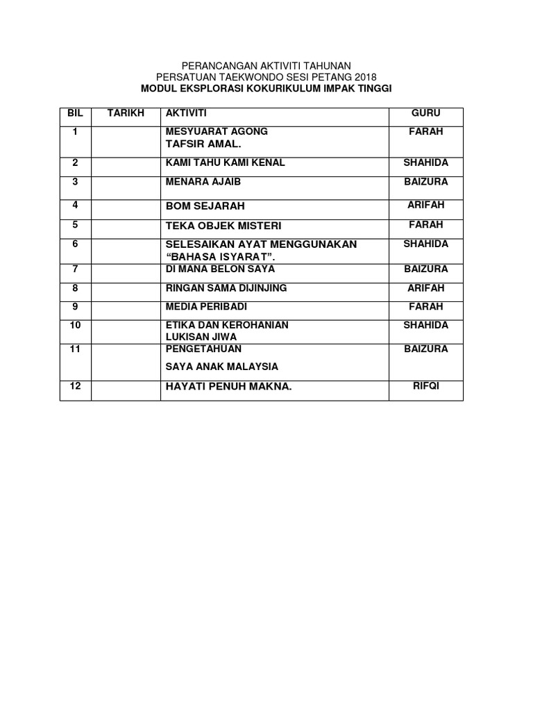 Perancangan Aktiviti Tahunan Taekwondo 2018 Pdf