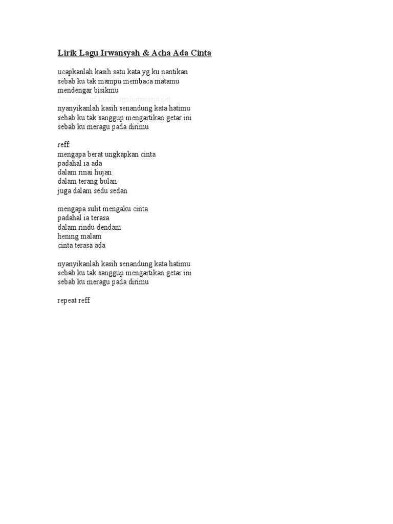 Ada Cinta Acha Septriasa Ft Irwansyah Lyrics Youtube